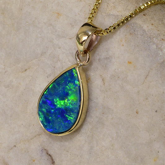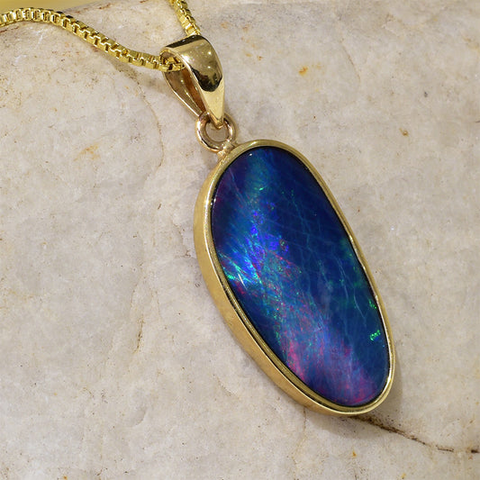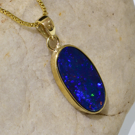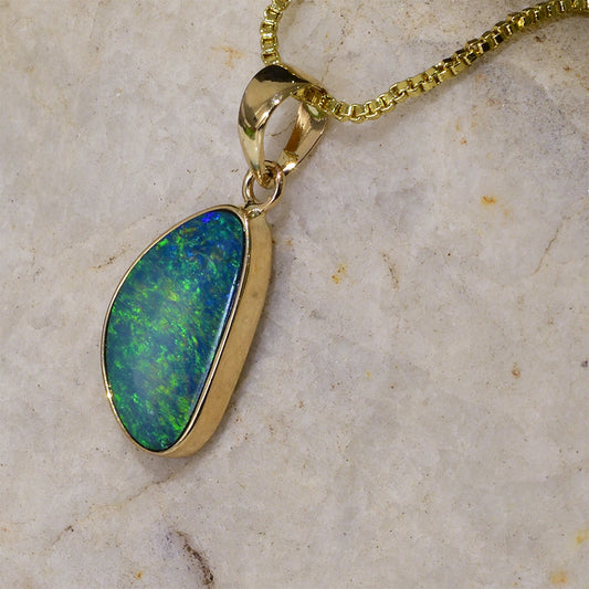 14K Yellow Gold Boulder Doublet Opal Pendant 14KY-OPD019