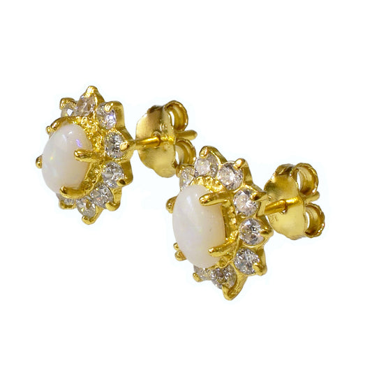 Sterling Silver Solid Light Opal Earrings 18k GP (12E-SG)