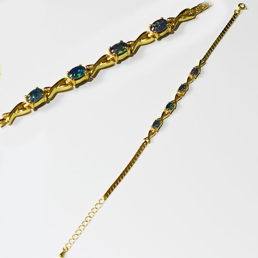 Sterling Silver Black Triplet Opal Bracelet 18K GP 22B-TG