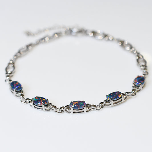 Sterling Silver Black Triplet Opal Bracelet 35B-TR