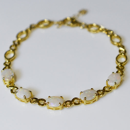 Sterling Silver Solid Light Opal Bracelet 18K GP OL0005SG (8x6mm opals)