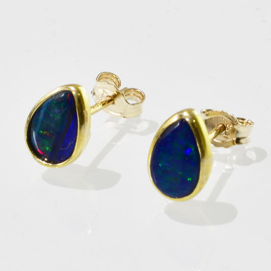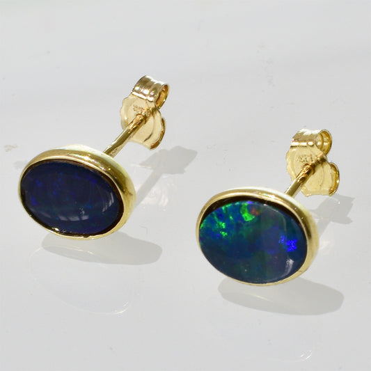 14K Yellow Gold Boulder Doublet Opal Earrings 14KY-OED007