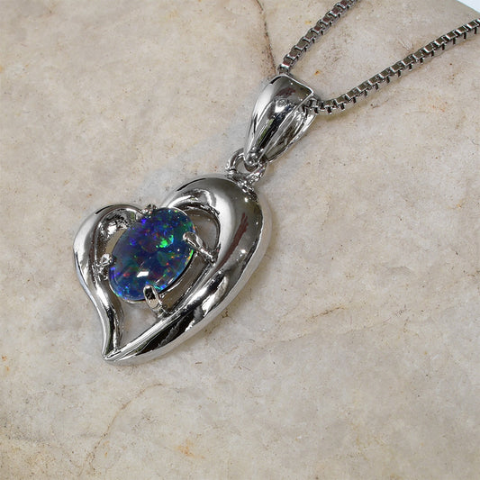 Sterling Silver Triplet Opal Heart Necklace WJOP-016TR (10x8mm opal)