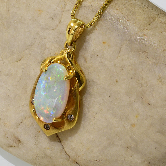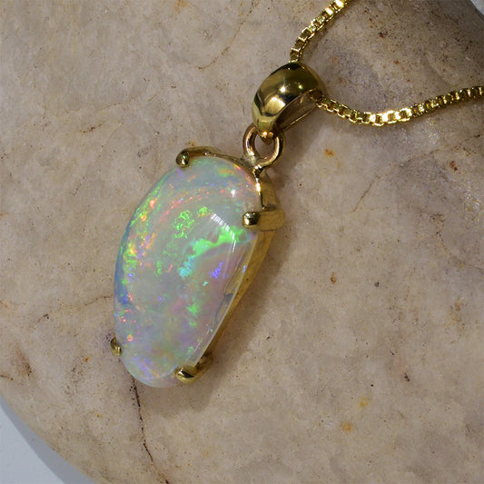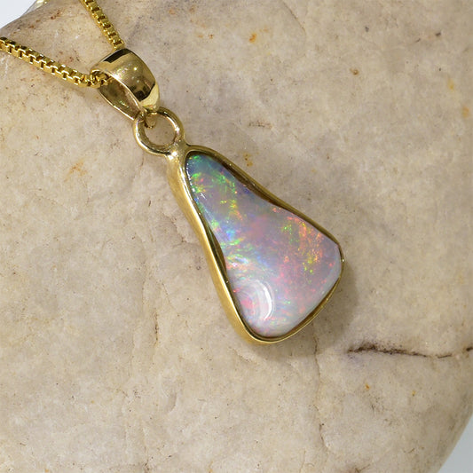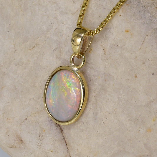18K Yellow Gold Solid Crystal Opal Pendant 18KY-OPS005
