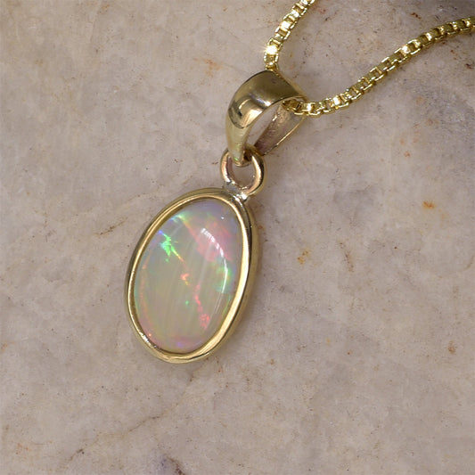 14K Yellow Gold Solid Crystal Opal Pendant 14KY-OPS009