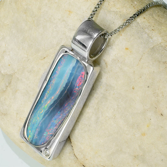 Large 18K White Gold Solid Boulder Opal Pendant 18KW-OPBS010