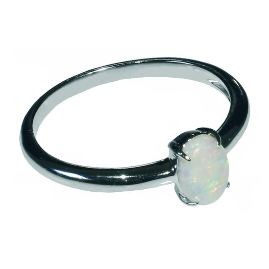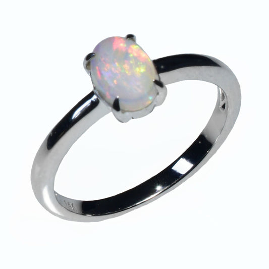 14K White Gold Solid Crystal OPAL RING 14KW-041S1 (SIZE Q/8)
