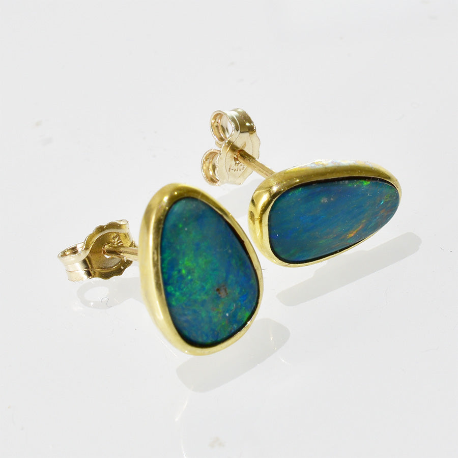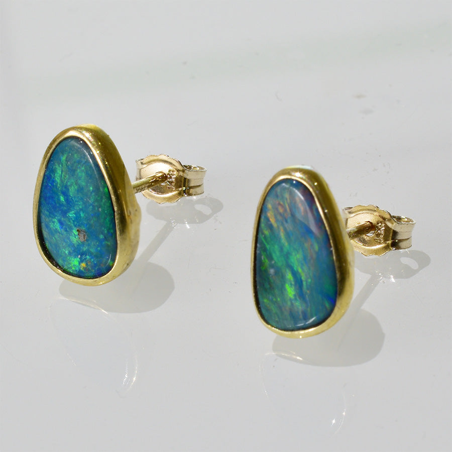 14K Yellow Gold Boulder Doublet Opal Earrings 14KY-OED005