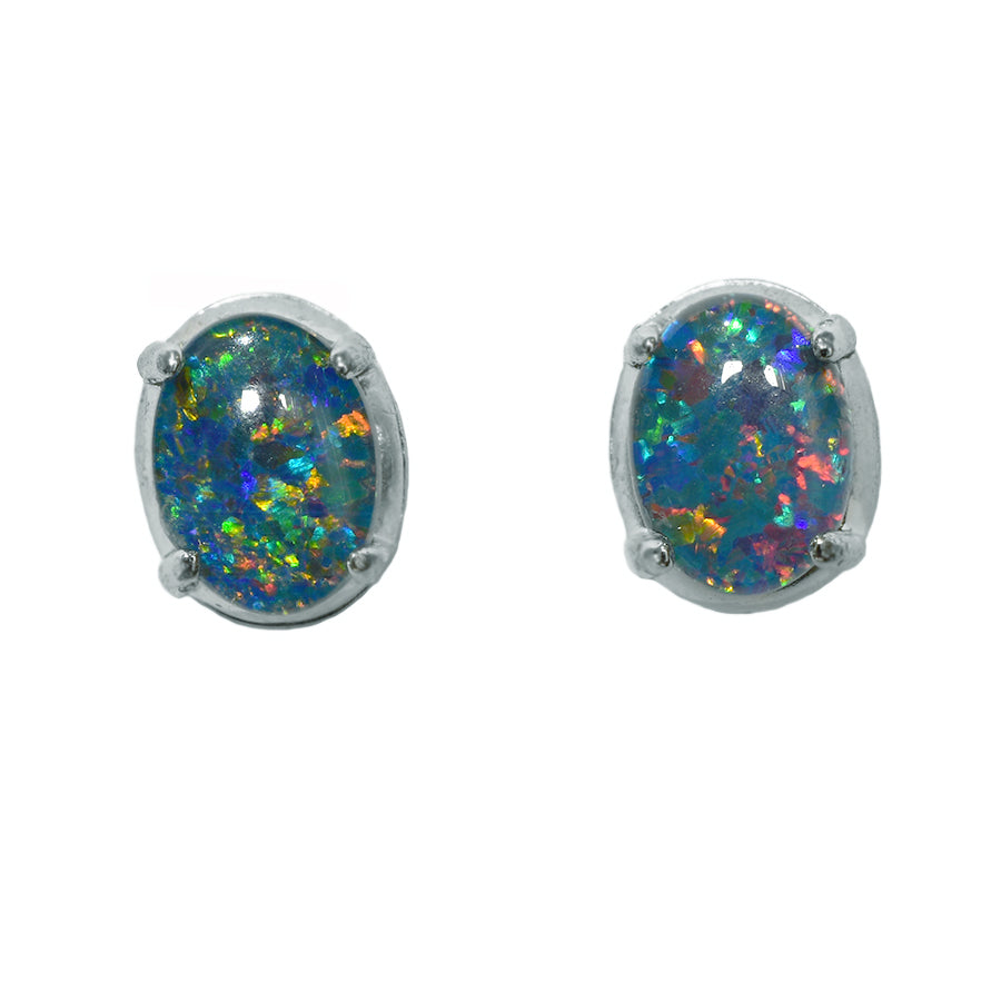 Sterling Silver Black Triplet Opal Earrings (28E-TR8X6)